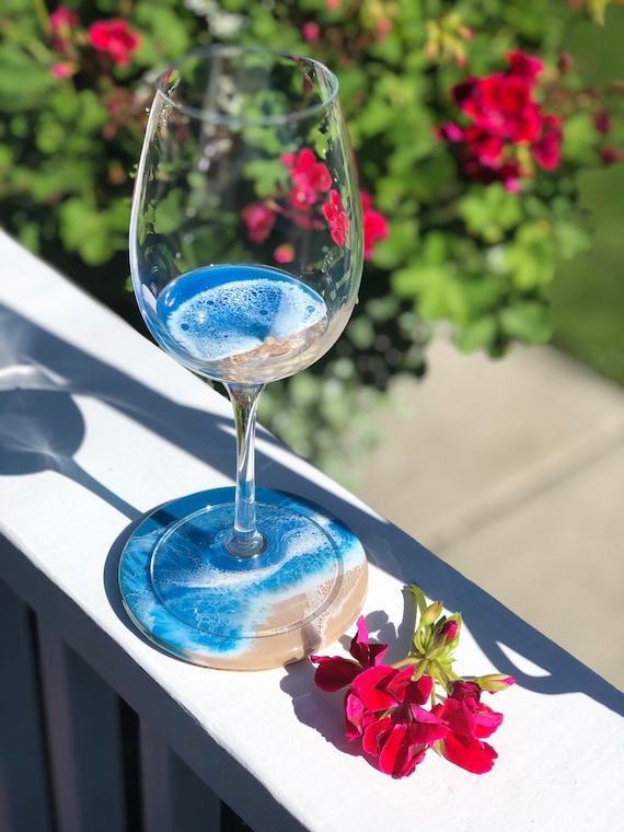Ocean Resin Seashell Wave Wine Glass Anniversary Gift Etsy
